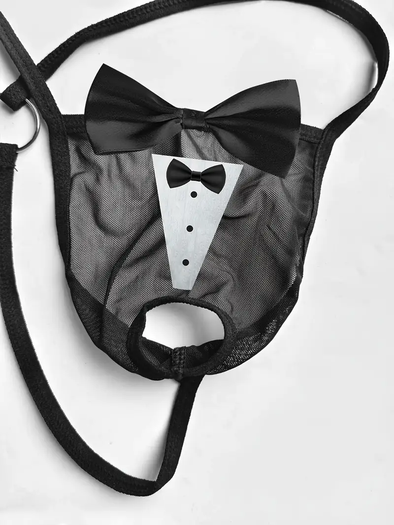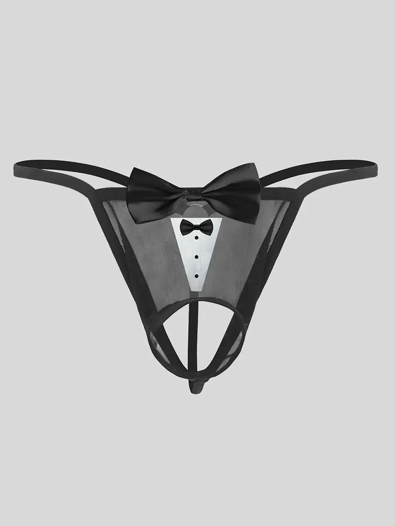 Esta tanga con abertura y detalle de lazo es tu mejor excusa para provocar miradas y reacciones. Ajuste perfecto, diseño semitransparente y una invitación descarada al juego. ¿Te animas a ser el regalo esta vez?